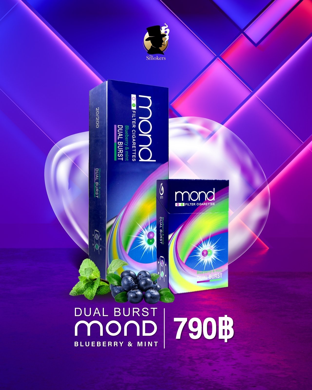 บุหรี่นอก Mond Dual Burst BlueBerry&Mint (2 เม็ดบีบ ตัวใหญ่) 790/carton