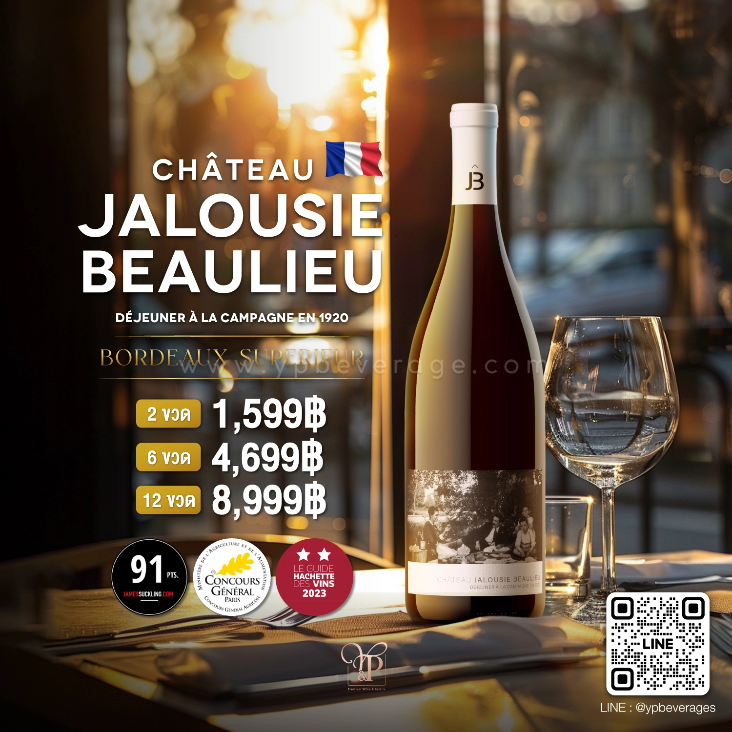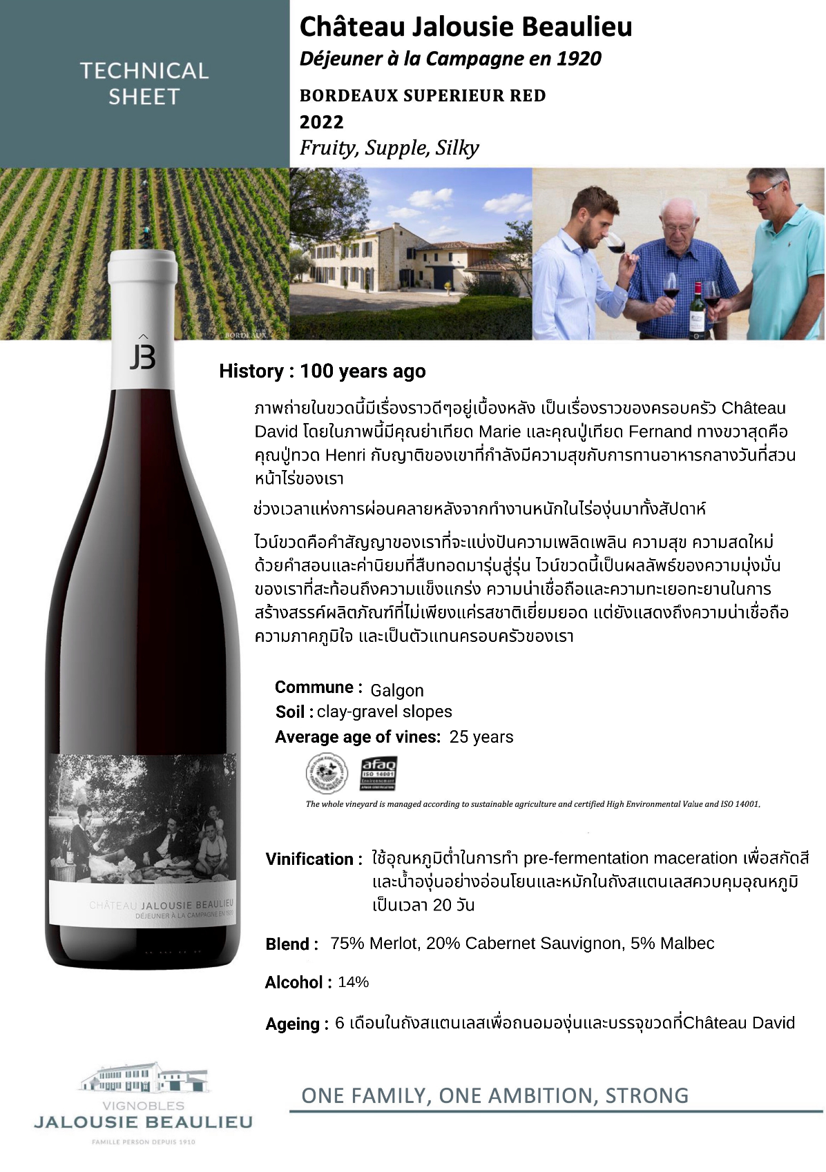 Château Jalousie Beaulieu Bordeaux Supérieur Red 2022 ไวน์แดงจากแคว้นบอร์โดซ์ (Bordeaux) ประเทศฝรั่งเศส ซึ่งถือเป็นหนึ่งในแหล่งผลิตไวน์ที่มีชื่อเสียงที่สุดในโลก และไวน์จากแคว้นนี้มักมีคุณภาพสูงและเป็นที่รู้จักในวงการไวน์ระดับนานาชาติ