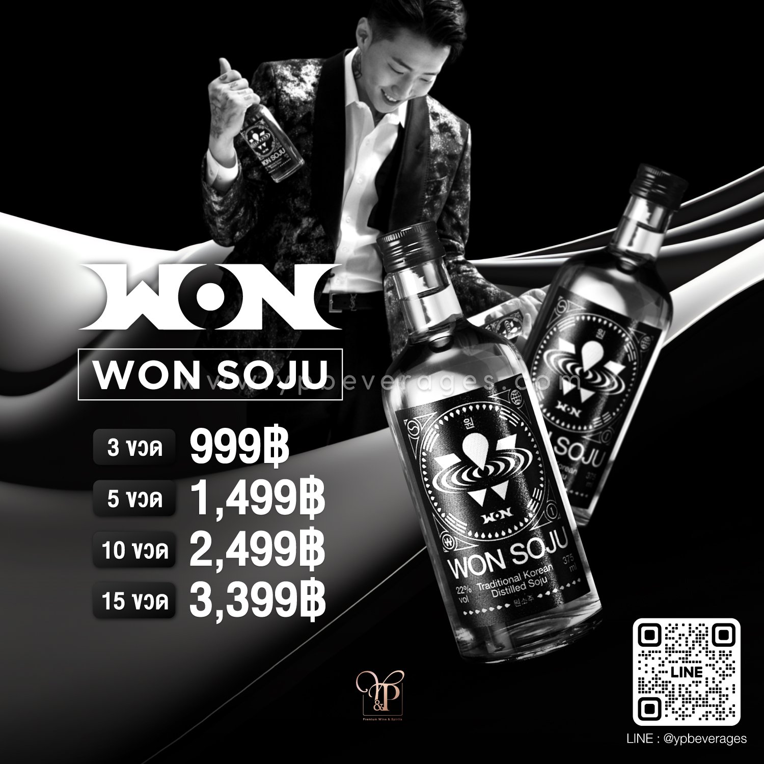 Won Soju เป็นโซจูคุณภาพสูงที่ถูกกลั่นและทำมาจากข้าวที่ถูกผลิตในท้องถิ่นของประเทศเกาหลี (Traditional Distilled Soju) มีปริมาณแอกอฮอล์ 24 เปอร์เซ็นต์ วางจำหน่ายในรูปแบบขวดปริมาณ 375 มิลลิลิตร