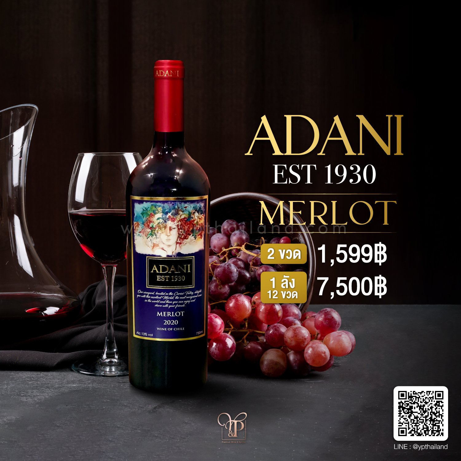 Adani Merlot เป็นไวน์แดงชั้นเยี่ยมจากแหล่งผลิตที่มีชื่อเสียงในชิลี ไวน์นี้ผลิตจากองุ่นสายพันธุ์ Merlot 100% ซึ่งมีความนุ่มนวลและรสชาติที่เข้มข้น ให้ประสบการณ์การดื่มไวน์ที่ยอดเยี่ยม