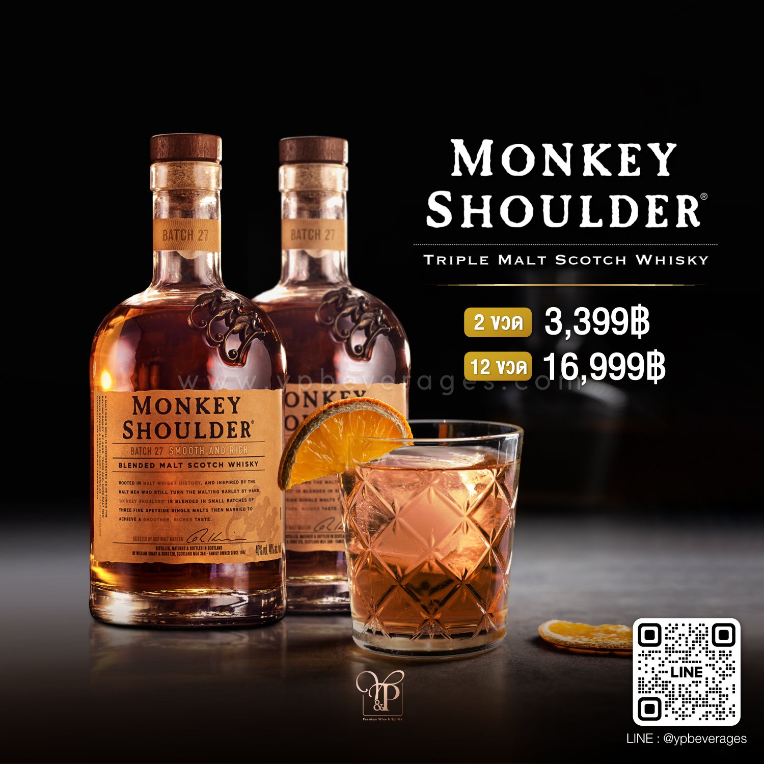 Monkey Shoulder ได้รับการออกแบบมาเพื่อสะท้อนถึงความเป็นวิสกี้สกอตช์ที่นุ่มนวลและเข้าถึงได้ง่าย ซึ่งสามารถดื่มเพียวๆ หรือใช้เป็นเบสในค็อกเทลได้ดี ความพิเศษของ Monkey Shoulder คือการไม่ใช้วิสกี้เกรนในกระบวนการผลิต ทำให้มีรสชาติที่เต็มเปี่ยมไปด้วยความลึกซึ้งและความหอมของมอลต์