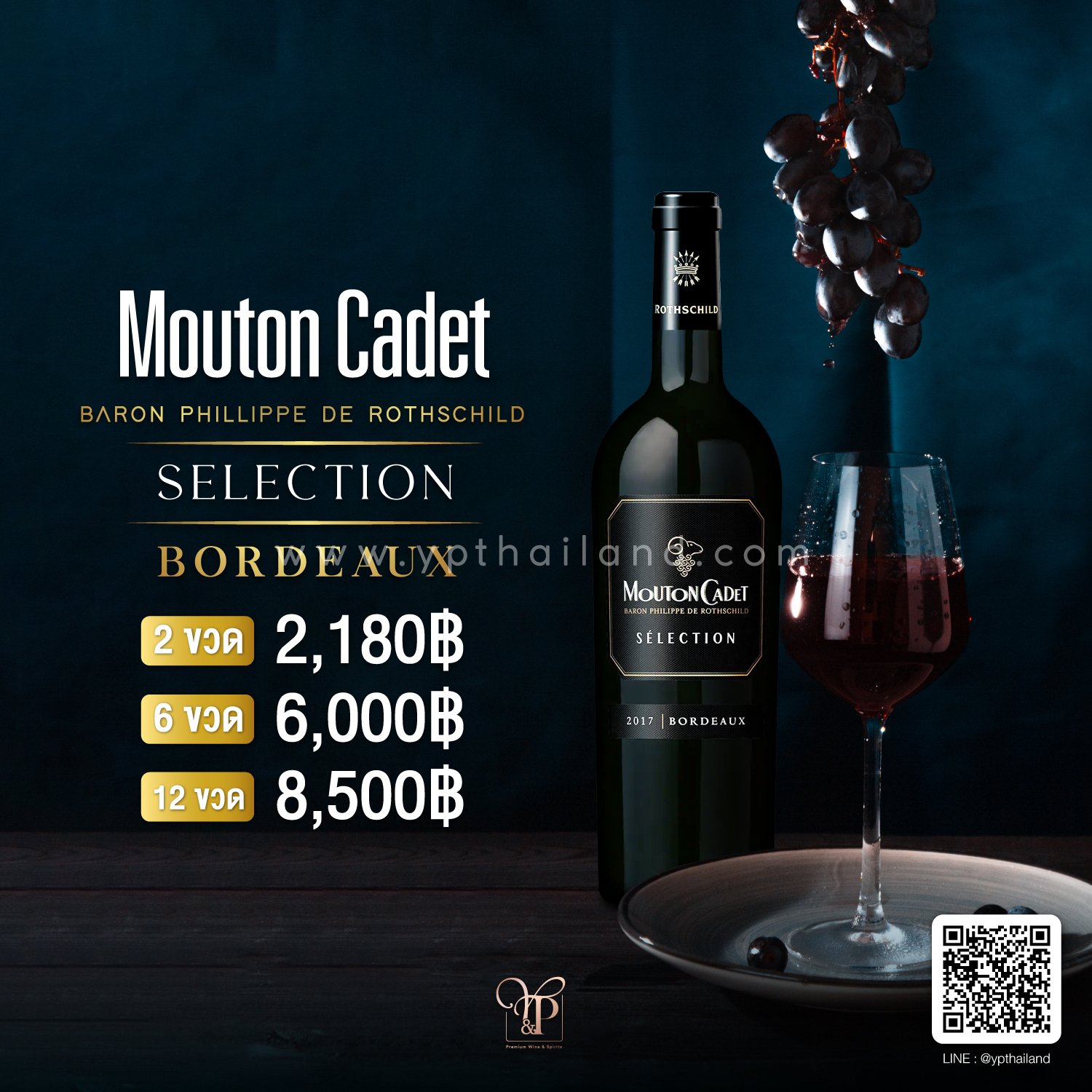 MOUTON CADET SELECTION BORDEAUX ROUGE กลิ่นของผลไม้สีดำที่สดใหม่ โครงสร้างแทนนินที่สะอาดและประณีตปรากฏขึ้นบนเพดานกลาง เพื่อนำรสชาติผลไม้สีดำมาปิดท้ายด้วยกลิ่นกาแฟ
