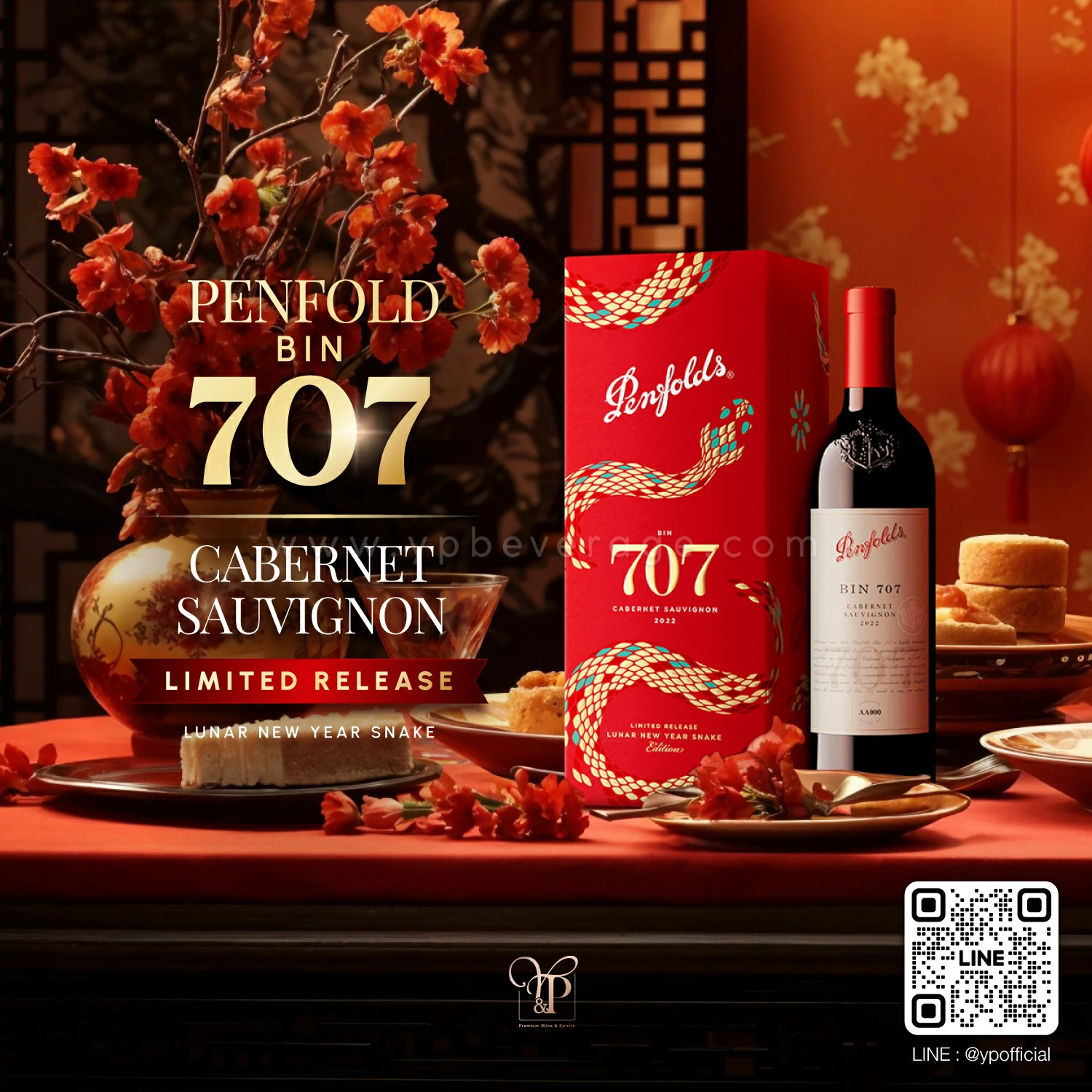 Penfolds Bin 707 คือ Cabernet Sauvignon ระดับไอคอนของออสเตรเลีย ผลิตในปริมาณจำกัดและได้รับการยอมรับว่าเป็นหนึ่งในไวน์ที่ทรงพลังและซับซ้อนที่สุดจาก Penfolds โดยวินเทจ 2022 รุ่นพิเศษ Lunar New Year Snake Edition มาพร้อมดีไซน์ขวดและกล่องบรรจุภัณฑ์เฉพาะเทศกาล เหมาะสำหรับการสะสมหรือมอบเป็นของขวัญระดับพรีเมียม
